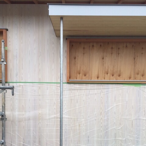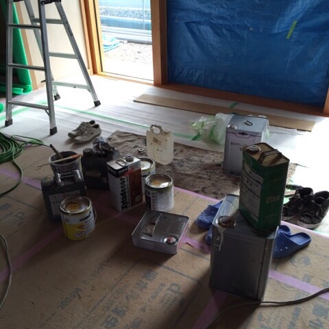 岐阜本巣 「上保の平屋 」 めでたく造作工事完了ということで、 塗装工事が始まりました。 外壁杉板の塗装、内部の枠周り、 床のオイル塗装です。 塗料はできるだけ市販の物で、 お施主さまが手に入れやすいものを 選ぶようにしています。 また、オイル塗装など比較的にメンテナンスの容易な 仕上げとすることで、 ご自分で継続的に低コストで メンテナンスできるように配慮しています。 メ……