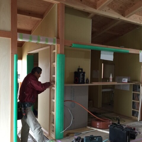 岐阜本巣 「上保の平屋 」 造作工事もあらかた終盤。 電気屋のKさんが コンセントボックスを取り付けていました。 取り付けに悩む箇所などは、 いつも僕が現場に着くのを待っていてくれる 優しい電気屋さんです。 [caption id="" align="alignnone" width="300"]