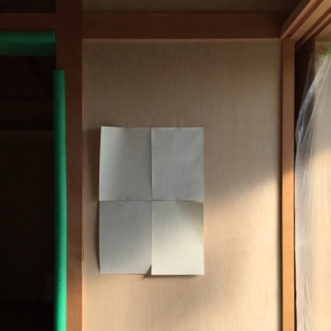岐阜本巣 「上保の平屋 」 そろそろ壁紙を決める時期になりました。 取り寄せたサンプルを貼ってお施主さまとご相談。 改めて写真でみるとまた色が 違ってみえるので不思議ですが、 現場でかなり悩んだ末に ファイナルアンサーとなりました。 [caption id="" align="alignnone" width="300"]