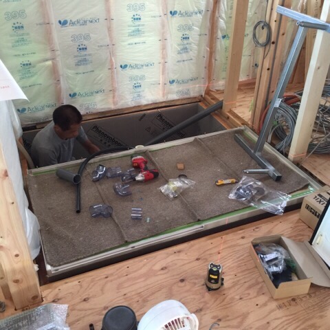 岐阜本巣 「上保の平屋」 浴室周りの施工が始まりました。 上保の平屋ではユニットバスを採用しています。 建物内部の造作工事が始まる前のこのタイミングに 施工すれば、材料の搬入組み立てもしやすいのです。 監督さんのおかけで段取り良く着々と進んでいます。 [caption id="" align="alignnone" width="300"]