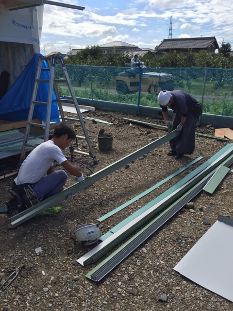 岐阜本巣 「上保の平屋」 現場に到着すると、 いつもの板金屋さんが作業中。 庇のガルバリウムを納めていました。 ん?親方と打ち合わせしたのとちょっと違う? 作業の始めだったので滑り込みセーフ。 子方さんまで上手く伝わらなかったようです。 現場で対応可能とのことで、 早速修正作業をしてもらいました。 いつも笑顔で仕事してくれる 頼もしい職方さんコンビです。 [caption i……