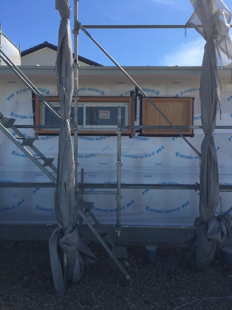 岐阜本巣 「上保の平屋」 板金屋さんが採寸に来ました。 ちょうど庇の下地が出来たところなので、 板金の納まりなどを打ち合わせして、 アスファルトルーフィングを仮敷き。 雨が多いこの頃ですが、 隙を見計らってコツコツと進んでいます。 [caption id="" align="alignnone" width="300"]