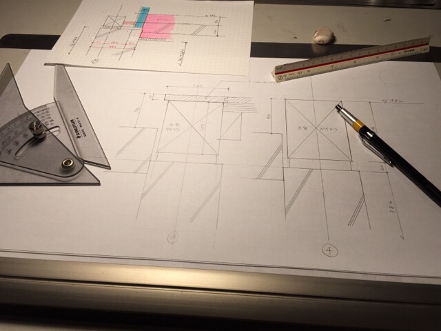 岐阜本巣「上保の平屋」 地鎮祭を終えて、早速始まる基礎工事に向けて、 アトリエでは夜な夜な施工図を描いています。 ここで描く図面は実際に形になるものですから、 仕上がりを想像しながら慎重に進めます。 一度は終わった設計をはじめから 見直す大切なプロセスでもあり、 そんな時はやっぱり手描きでこつこつと。 これもまた楽しい作業です。