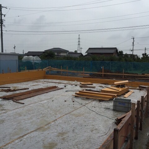岐阜本巣「上保の平屋」 基礎のコンクリート打設工事の1回目。 スケジュールが組みづらい梅雨ですが、この日は曇り。 この夏場にはうってつけのコンクリ日和です。 夏場は日射のせいでコンクリートの水分が 急激に蒸発してしまうため、散水養生が必要だったり、 固まるのも早いので忙しい工事になりますが、 曇りで湿度も高いので、 安心してコンクリートを打つことがで……