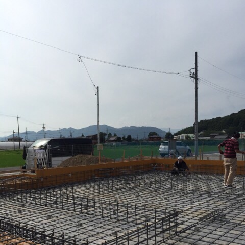 岐阜本巣「上保の平屋」 基礎の配筋検査に行ってきました。 現場についたら終わっているはずの鉄筋工事ですが、 暑さのために作業が遅れていました。 平屋のため、 一般的な2階建ての基礎に比べて規模が大きいことと、 この暑さでは仕方がありませんね。 配筋検査とは、鉄筋が図面どおりに組まれているかどうか、 コンクリートの打設に支障がないか、 設備の先行配管やスリーブが施工されているかなど……