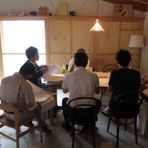 岐阜本巣「上保の平屋」 基礎工事にかかる前に開催した キックオフミーティングの様子。 工務店の監督さんをはじめ、 電気業者さん、設備業者さん、ガス屋さんと 僕がメンバーです。 各業者さんの顔あわせを兼ねて、 工事を進めるにあたって難しいポイントや その他注意事項などをひとつずつ確認していきます。 事前にこのミーティングをすることで、 現場……