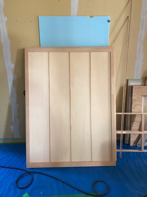 ガラス屋さんが、 窓にガラスを入れています。 アルミサッシは予め組み立てられて 現場に搬入されますが、 木製の窓は現場でガラスを組み込みます。 ガラスは意外と重くて割れやすいのです。 微調整しながら慎重にガラスを入れていました。